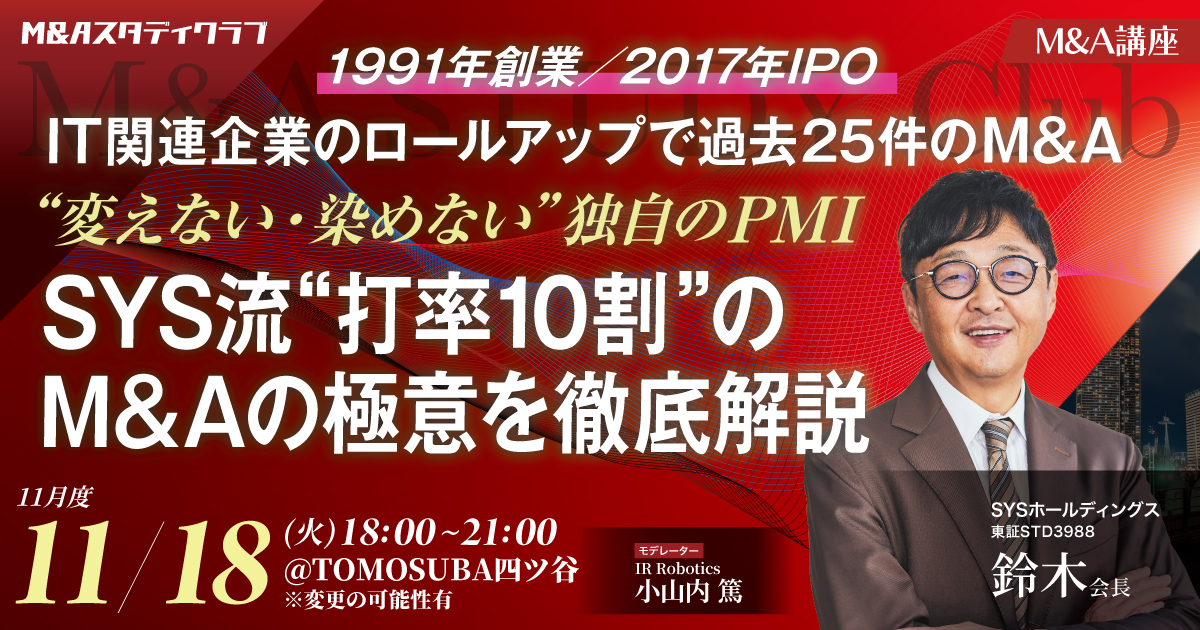 1991年創業/2017年IPO IT関連企業のロールアップで過去25件のM&A”変えない・染めない”独自のPMI SYS流”打率10割”のM&Aの極意を徹底解説